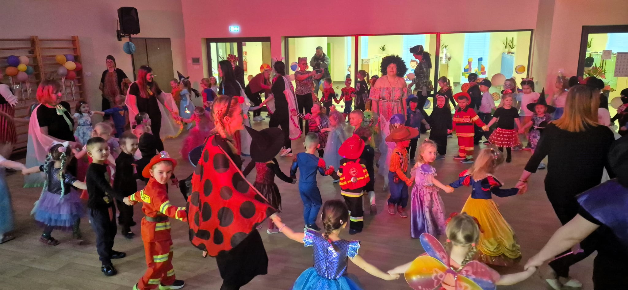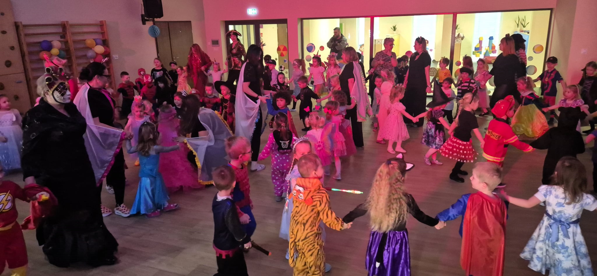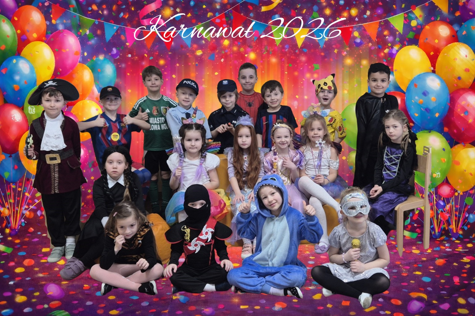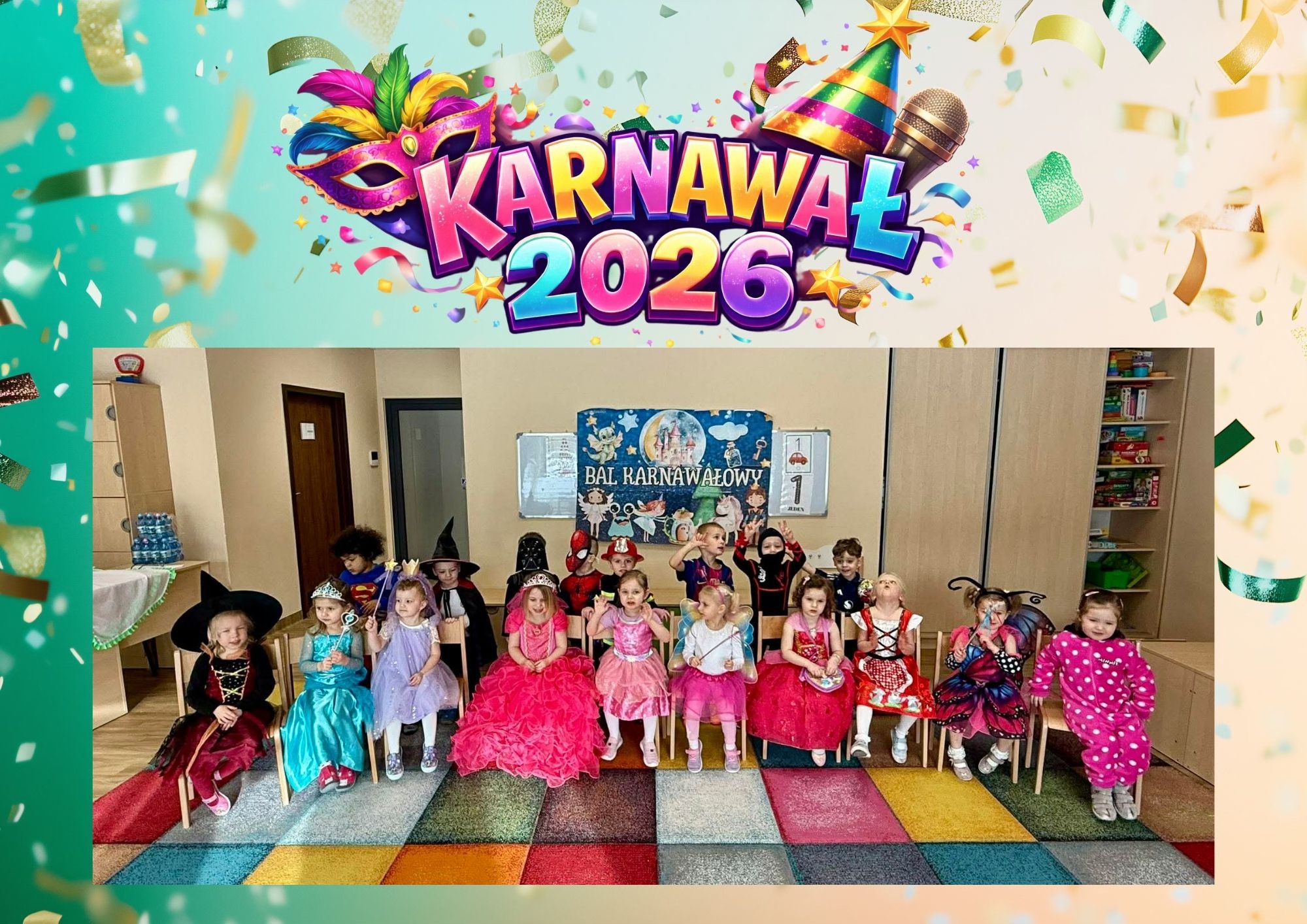 11 lutego 2026 roku nasze przedszkole zamieniło się w prawdziwą krainę radości i kolorów! Już od rana sale wypełniły się księżniczkami, superbohaterami, zwierzątkami, wróżkami i wieloma innymi fantastycznymi postaciami. Pomysłowość dzieci i Rodziców jak zwykle nas zachwyciła! Były tańce przy skocznej muzyce, wesołe zabawy oraz mnóstwo śmiechu. Nie zabrakło też wspólnych korowodów i pamiątkowych zdjęć, które na pewno będą pięknym wspomnieniem tego wyjątkowego dnia. Dziękujemy dzieciom za ogromną energię i cudowną atmosferę, a Rodzicom za przygotowanie wspaniałych strojów. To był bal, który długo pozostanie w naszej pamięci!