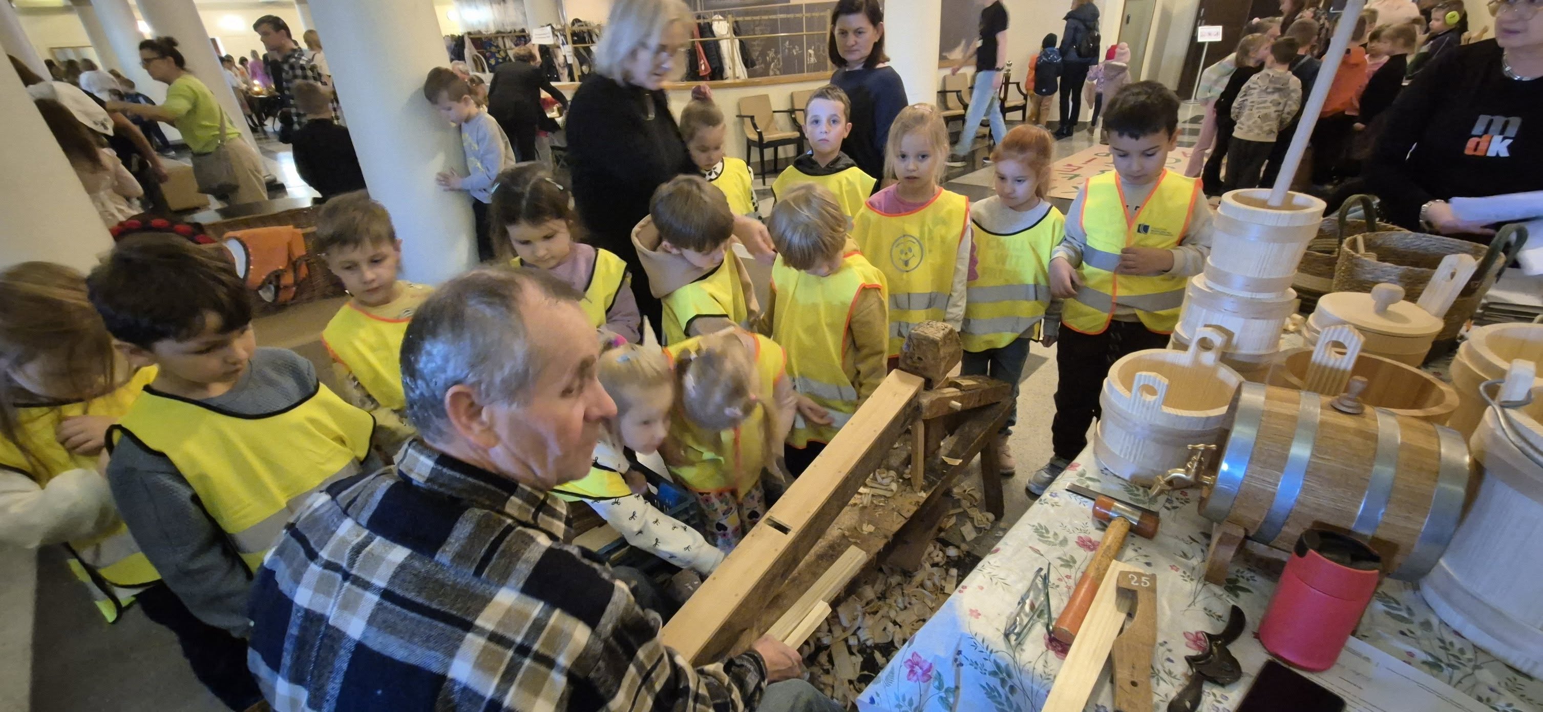 18 listopada 2025r. dzieci z Grupy Pomarańczowej  i Żółtej wzięły udział w finale Programu Edukacji Regionalnej MDK pn. „Lasowiacka skrzynia malowana – dziedzictwo w edukacji”. Było to prawdziwe święto naszej lokalnej tradycji! W ramach festiwalu odbył się koncert edukacyjny ,,Lej wosk bez klucz" przygotowany przez dzieci i młodzież z zespołów artystycznych MDK. Podczas widowiska młodzi tancerze i aktorzy zaprezentowali świat gwary lasowiackiej, muzyki i tańca. Dzieci uczestniczyły także w pokazach rzemieślniczych, warsztatach rękodzielniczych oraz poznawały tradycje kulinarne i obrzędowe regionu. Mogły na żywo obserwować pracę takich rzemieślników jak: garncarz, bednarz, zabawkarz czy plecionkarz. Poznały tajniki lasowiackiego rękodzieła, a także skosztowały regionalnych przysmaków, m.in. proziaków. Dodatkowo miały okazję przymierzyć stroje ludowe oraz pobawić się w wróżenie z lanego wosku.