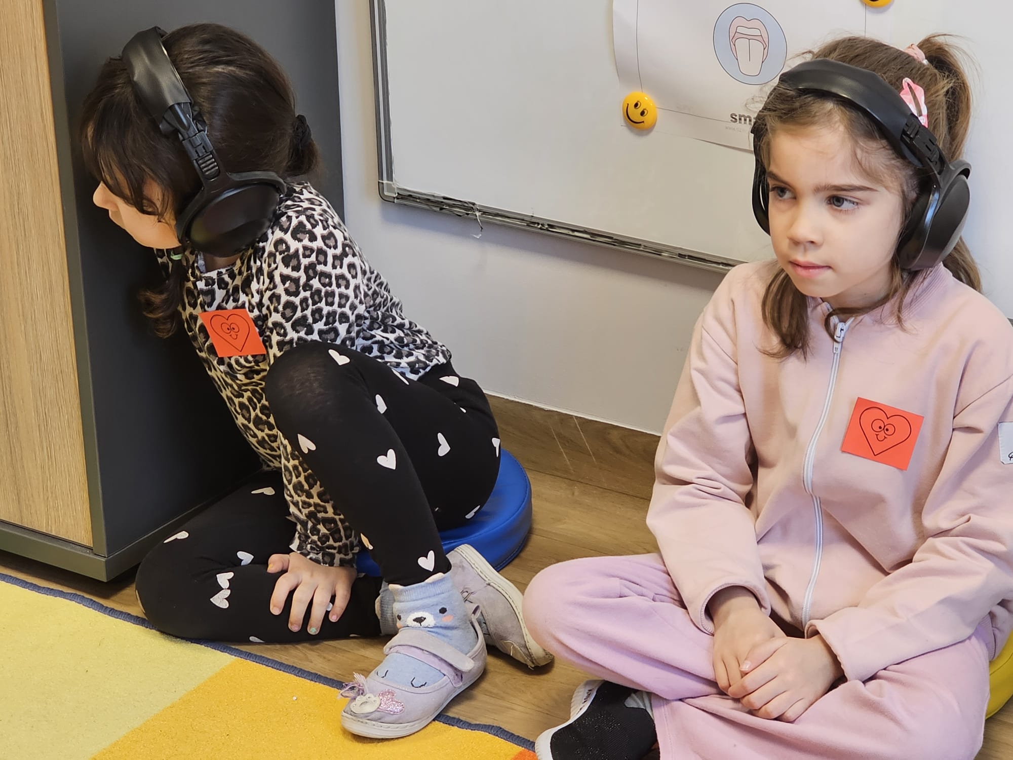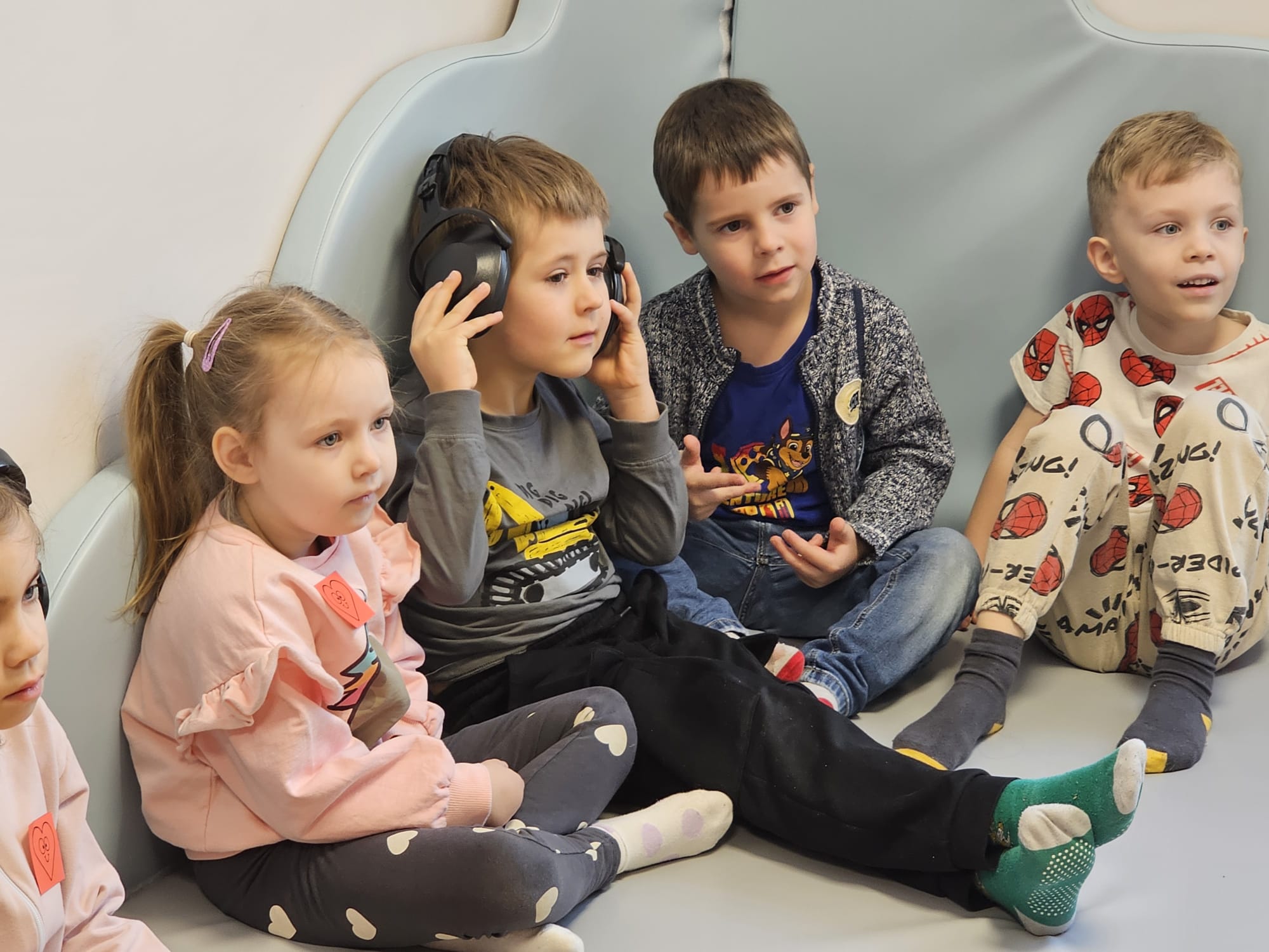 Tym razem przedszkolaki miały okazję poznać codzienność osób głuchych i słabosłyszących oraz doświadczyć, że świat można poznawać na wiele różnych sposobów — nie tylko poprzez słuch, ale również poprzez wzrok, dotyk, ruch i emocje. Poznały podstawy języka migowego, próbowały komunikować się bez użycia głosu, doświadczały „świata ciszy” oraz odkrywały, że muzykę i rytm można odczuwać całym ciałem dzięki wibracjom. Zajęcia odbywały się w małych grupach, które rotacyjnie odwiedzały cztery stacje tematyczne: